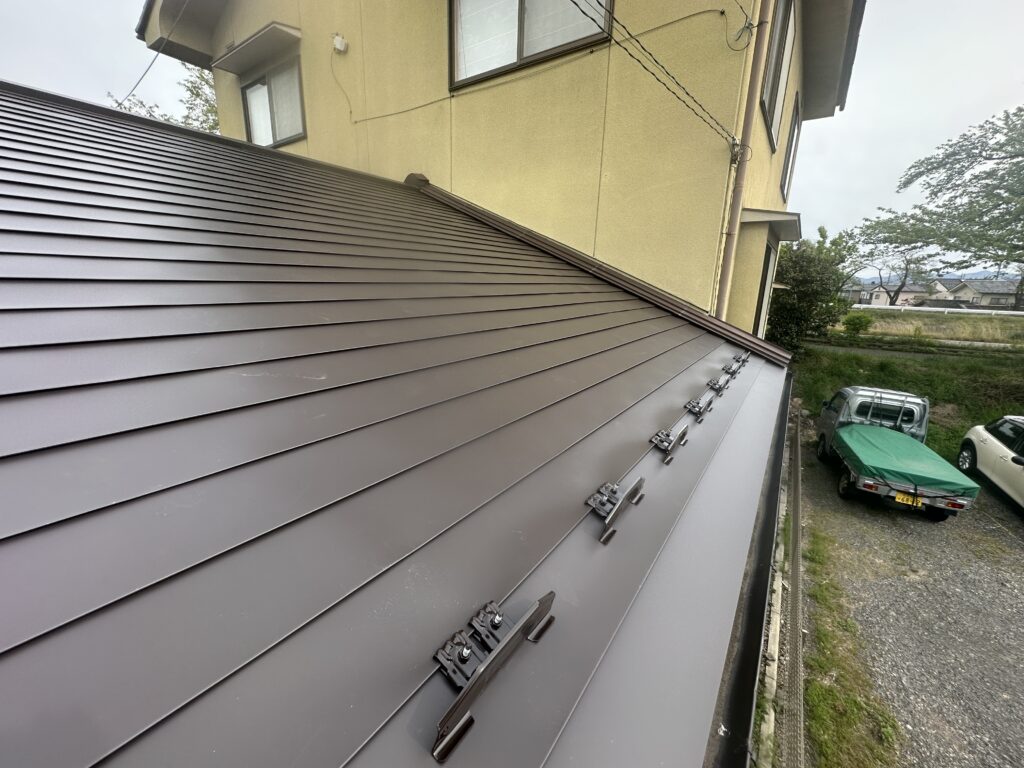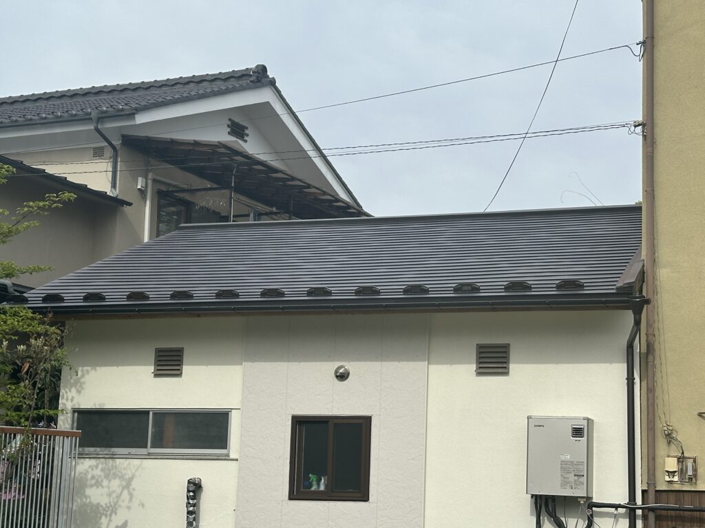屋根葺き替え工事(松本市) 2026-04-27 施工事例 #ガルバリウム鋼板#リフォーム#屋根葺き替え#松本市#長野県 松本市で瓦屋根からガルバリウム鋼板に葺き替えさせて頂きました。 雨漏りの心配がないようにしっかりと仕上げさせて頂きました。 施主さんにも大変喜んで頂きました。 before写真 after写真 施工内容 瓦降ろし 下地張り作業 ルーフィング貼り作業 ガルバリウム鋼板張り作業 施工事例 #ガルバリウム鋼板#リフォーム#屋根葺き替え#松本市#長野県