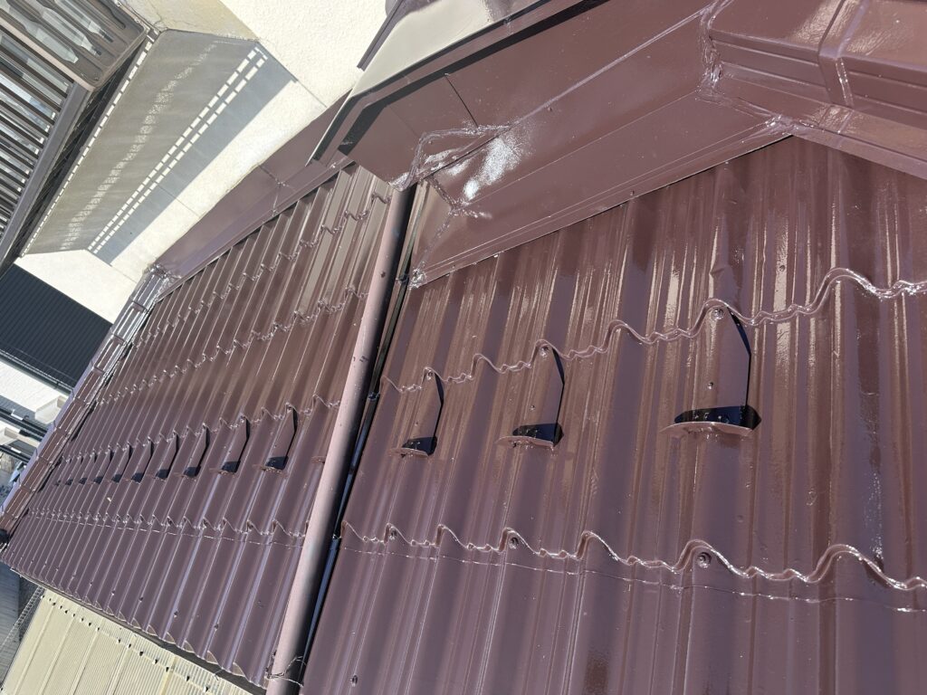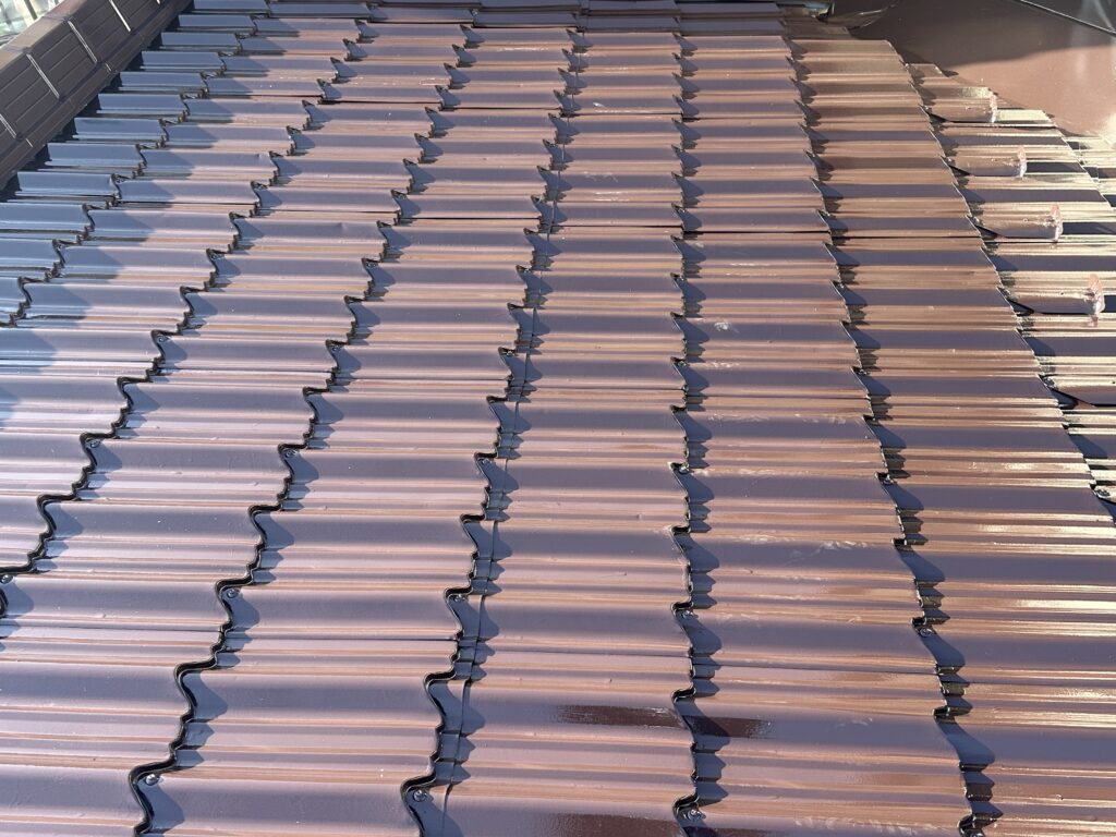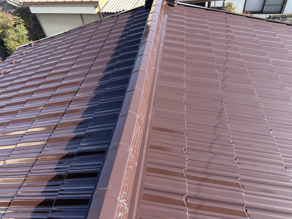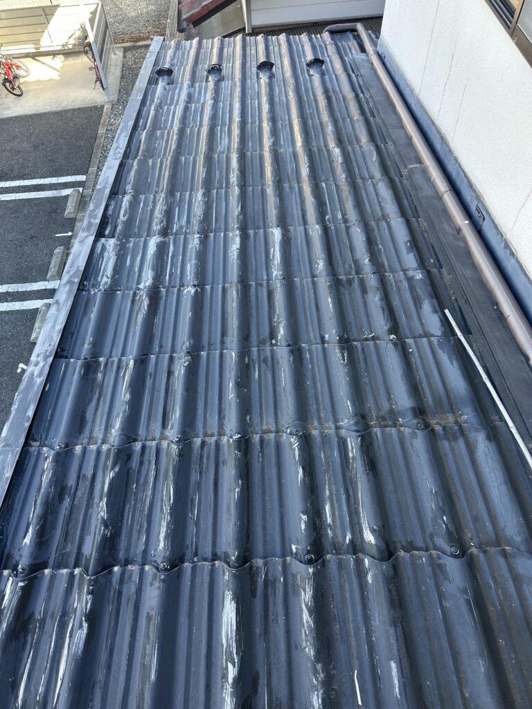 下屋根塗装(塩尻市) 2026-03-01 施工事例 #塩尻市#屋根塗装#長野県 塩尻市で下屋根の塗装をさせて頂きました。 日本ペイントのファインパーフェクトルーフを使用しました。 色はコーヒーブラウンです。 ケレンをしてから錆止め1回の上塗り2回の計3回塗りで仕上げました。 施主からピカピカになったと喜んで頂きました。 施工事例 #塩尻市#屋根塗装#長野県