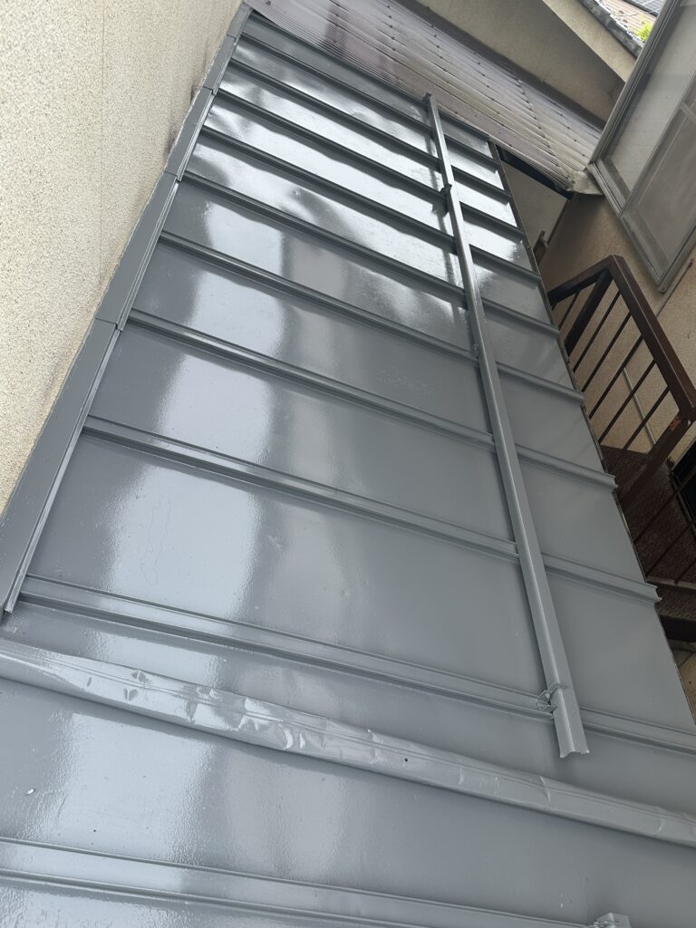 下屋根塗装(明科町) 2026-04-25 施工事例 #ラジカル制御形#安曇野市#屋根塗装#明科町#長野県 明科町で下屋根塗装工事をさせて頂きました。 前の塗装が浮いていた為、電動工具等でしっかりケレンして 錆止め1回の上塗り2回塗りで綺麗に仕上げさせて頂きました。 施主も時間をかけて、しっかり施工して頂き綺麗になったと喜んで頂きました。 施工前 洗浄作業 ケレン作業 錆止め作業 上塗り1回目 上塗り2回目(仕上げ) 施工事例 #ラジカル制御形#安曇野市#屋根塗装#明科町#長野県